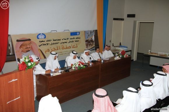 جاء ذلك خلال أعمال حلقة النقاش التي نظمها قسم الإعلام في جامعة الملك سعود اليوم بعنوان (التناول الإعلامي لعاصفة الحزم)، وتناول فيها أساتذة القسم، بحضور عدد من الباحثين والمهتمين في مجال الصحافة والإذاعة والتلفزيون من داخل المملكة وخارجها ولفيف من الطلبة، مجمل الموضوعات التي تشخص دور الإعلام حال وقوع الأزمة، والعوامل المرتبطة بقوة تأثيره ونجاحه في التواصل مع الجمهور، وما يتعلق بمهامه المناطة به خلال الأزمة.