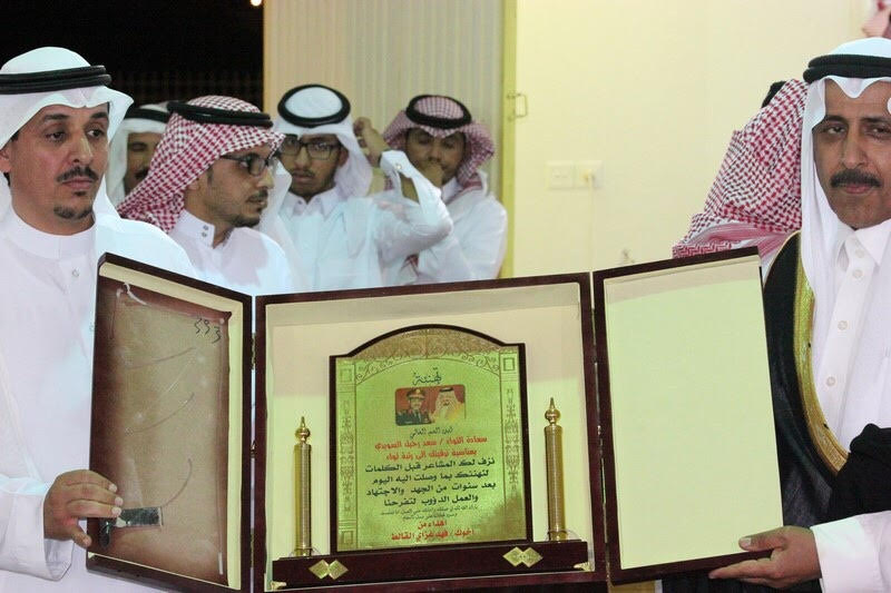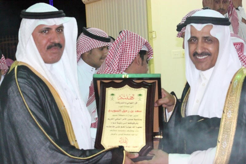 احتفل أبناء رحيل سلامه السويدي بأخيهم سعادة اللواء ” سعد بن رحيل السويدي” مدير جوازات منطقة عسير يوم الخميس 28/10/1436هـ بمقر الاحتفالات ببلدة دليهان غرب حائل 82 كيلو ، بمناسبة ترقيته إلى رتبة لواء ، حيث تخلل الحفل بعض القصائد الشعرية ، وفي نهاية الاحتفال تم توزيع الدروع والهدايا على المحتفى به وسط حضور مشرف من قبل الاحبه والاصدقاء .