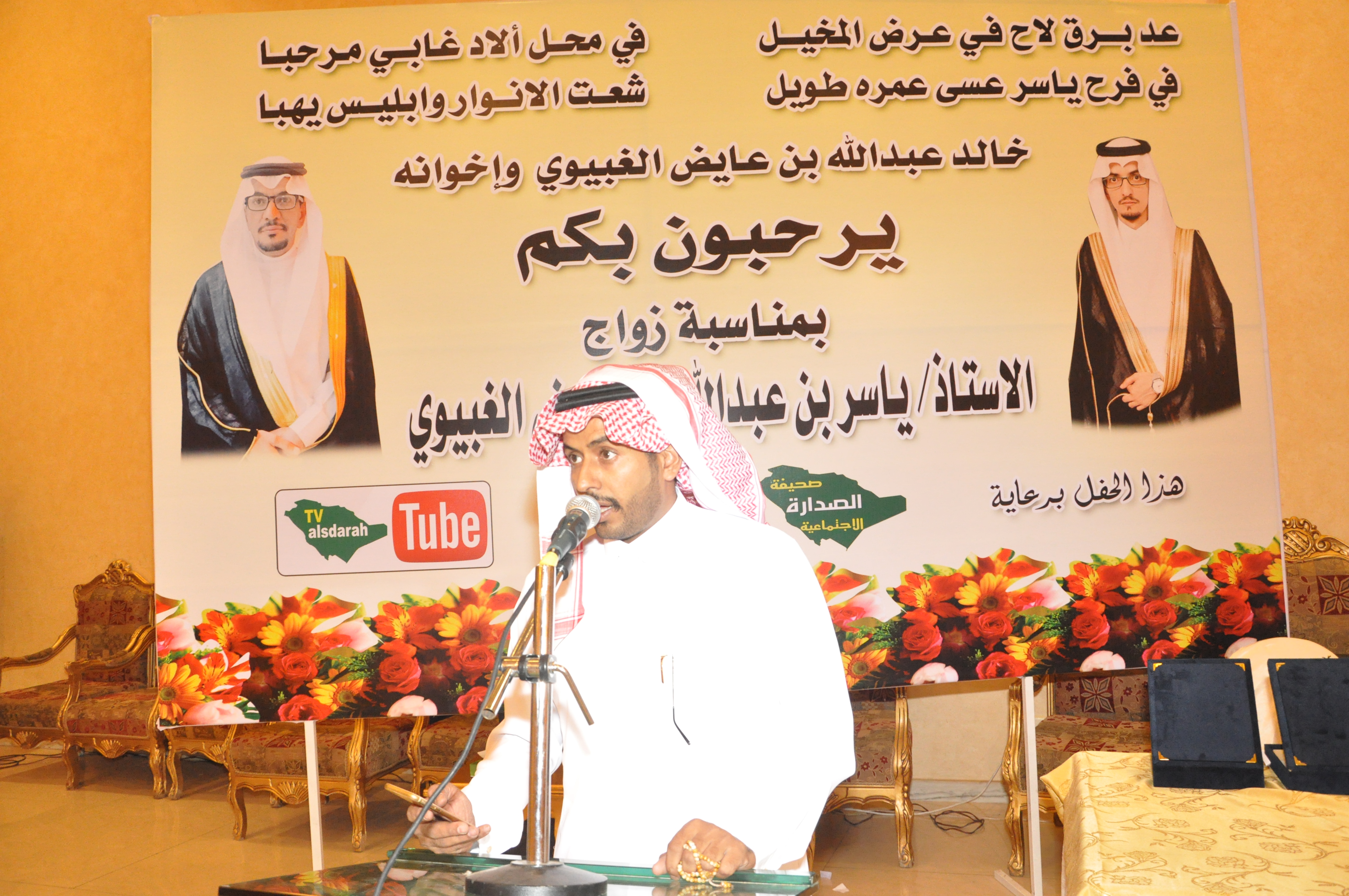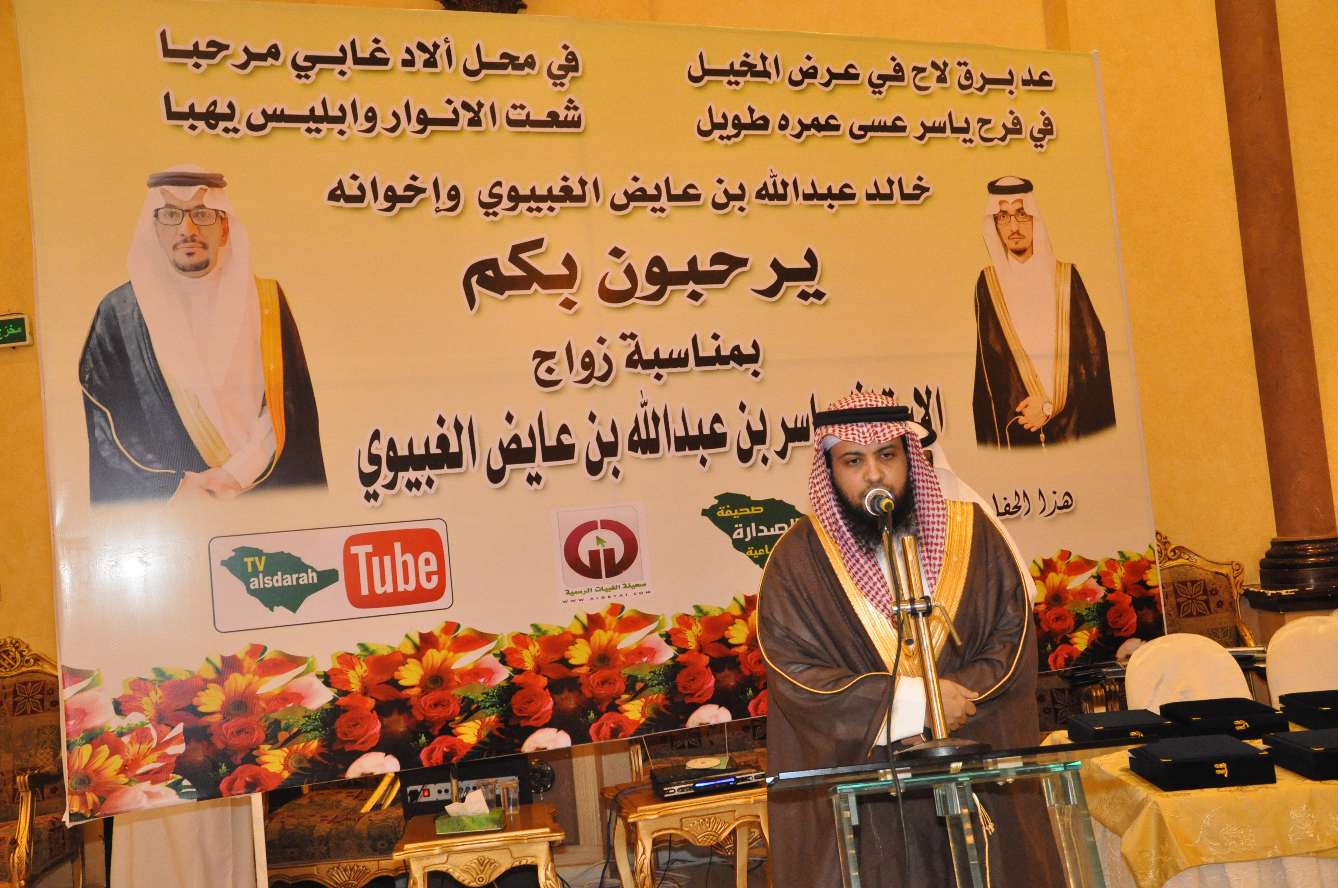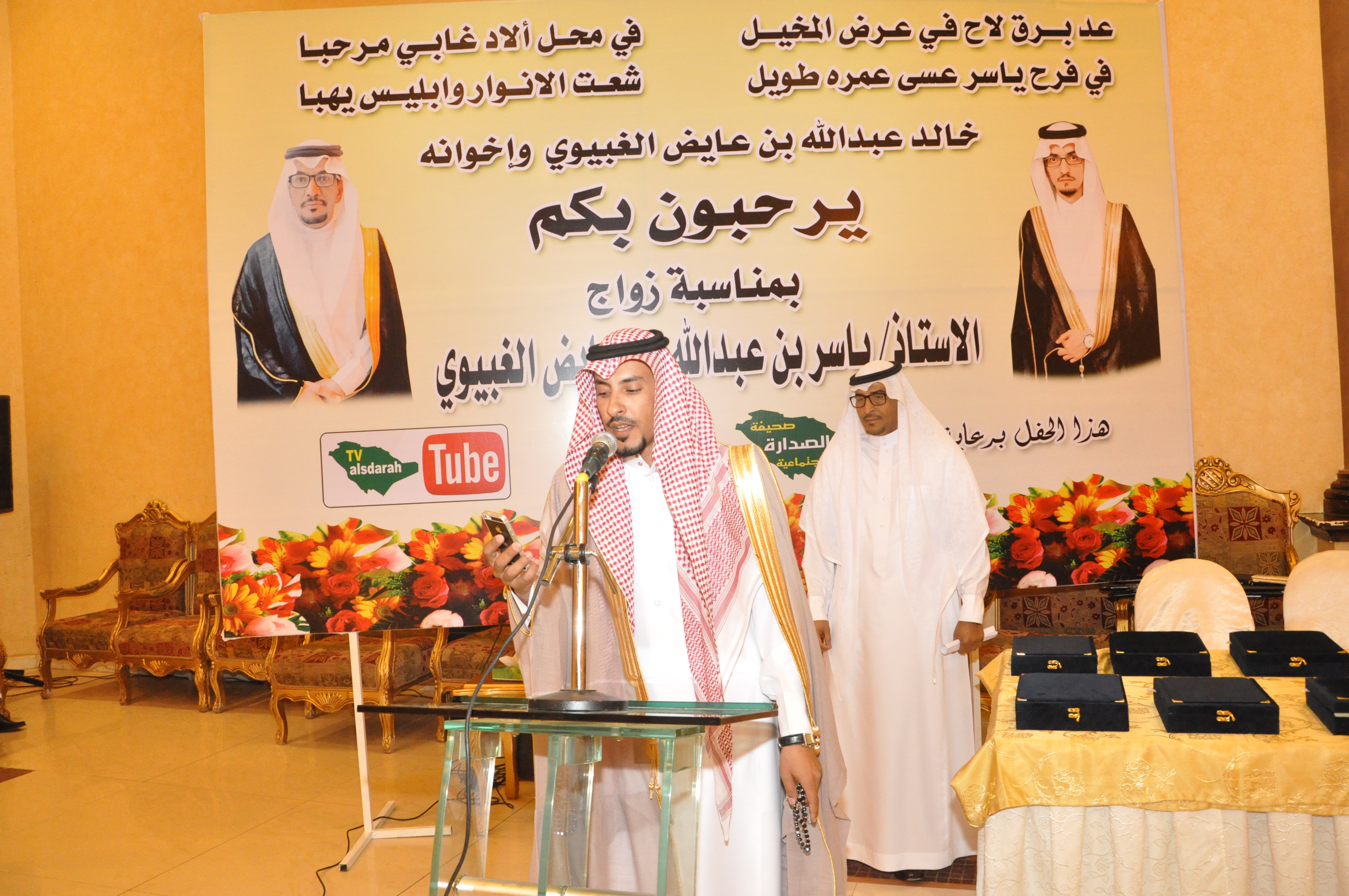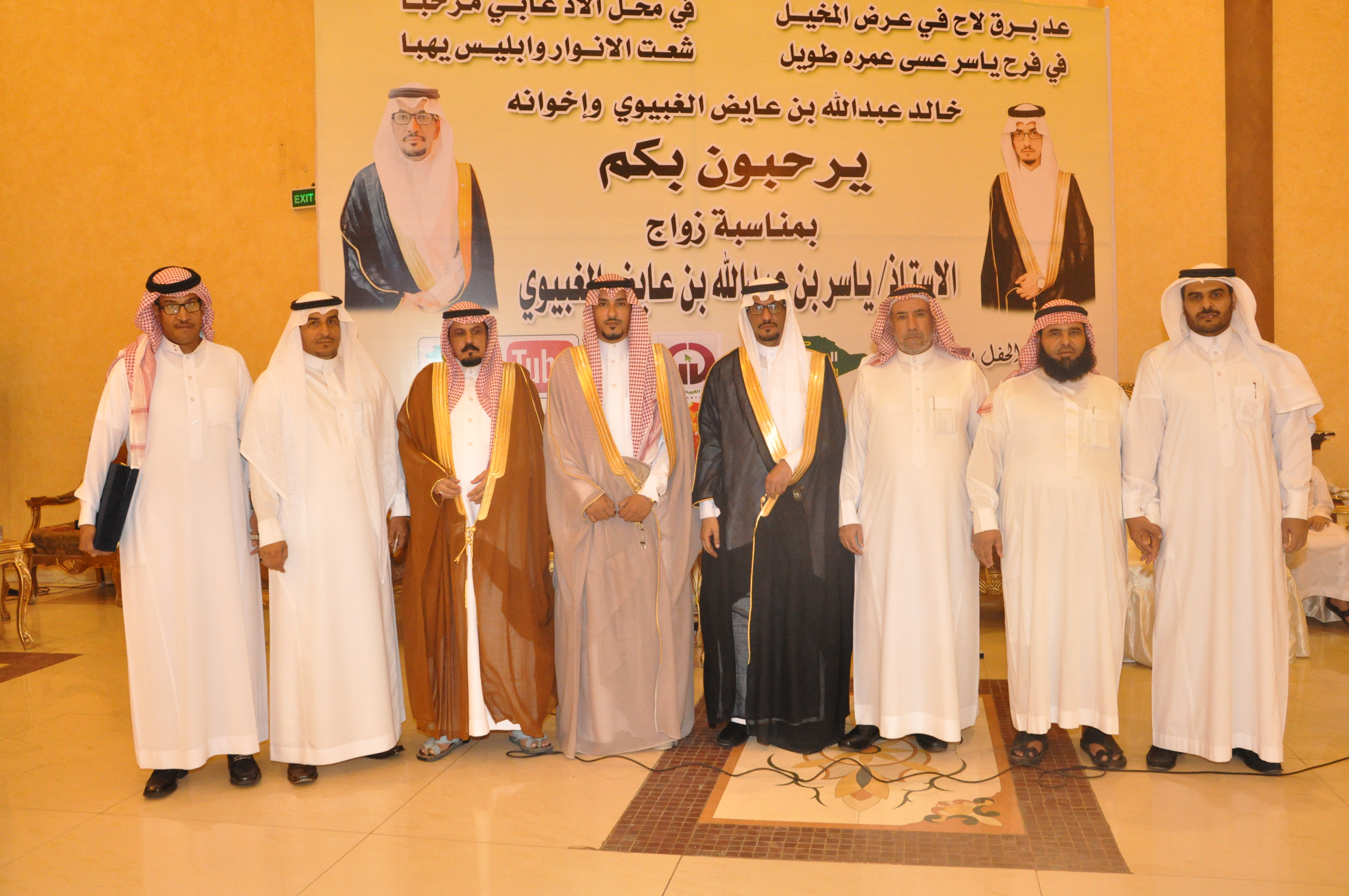 بحضورالاحبة والأهل والاصدقاء والزملاء احتفل أبناء عبدالله بن عايض الغبيوي بزواج أخيهم الاستاذ ياسر في قصر الذكريات بالرياض وقد كان في استقبال الضيوف الاستاذ / خالد بن عبدالله بن عايض وأخيه الاستاذ بندر مدير شؤون الموظفين بشركة بن لادن وأبناء عمومتهم والاقارب كما حضر الحفل ضيوف أعزاء من عدد من القبائل شاركوا أهل الحفل فرحتهم