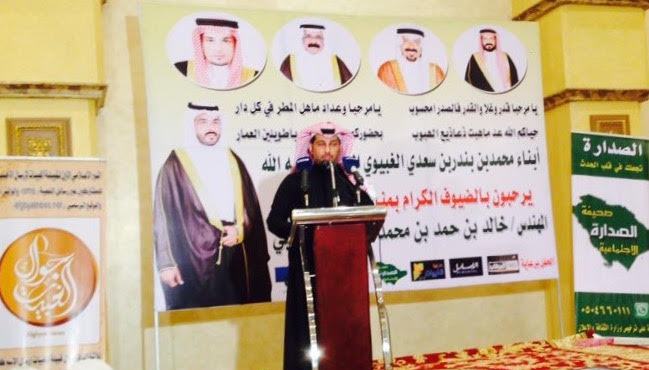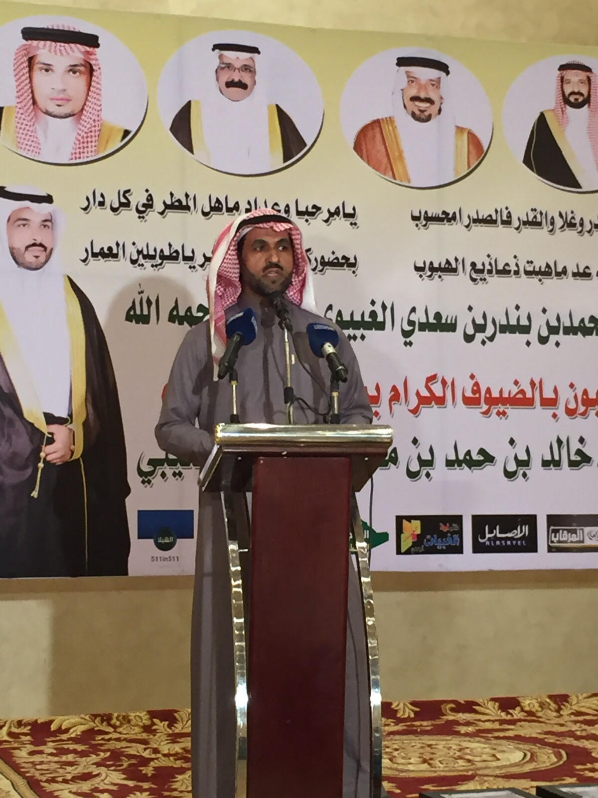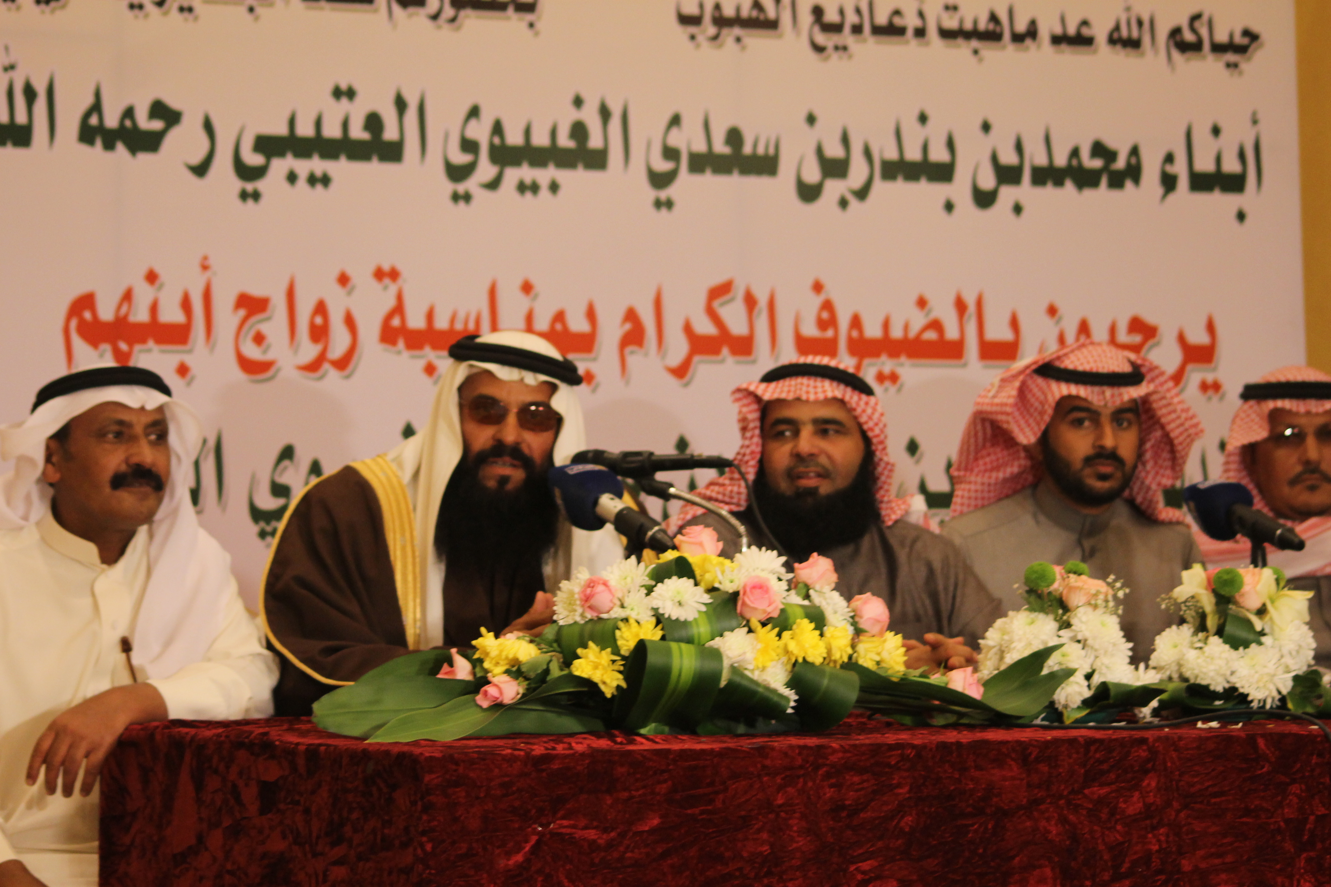 احتفل أبناء محمد بن بندر بن سعدي الغبيوي رحمه الله بمناسبة زواج ابنهم المهندس / خالد وسط حضور جمع كبير من أبناء قبيلتهم ومن خارج القبيلة كم حضر الحفل عددا من الضيوف والاصدقاء من دول الخليج والدول العربية وقد صاحب الحفل تغطيات إعلامية واسعة وحضوراً مميزاً لرموز وإعلاميي القبيلة وقد أقيم بهذه المناسبة حفلا خطابياً وبرنامجاً شعرياً مميزاً أحياه عدداً من نجوم الشعرالمعروفين .