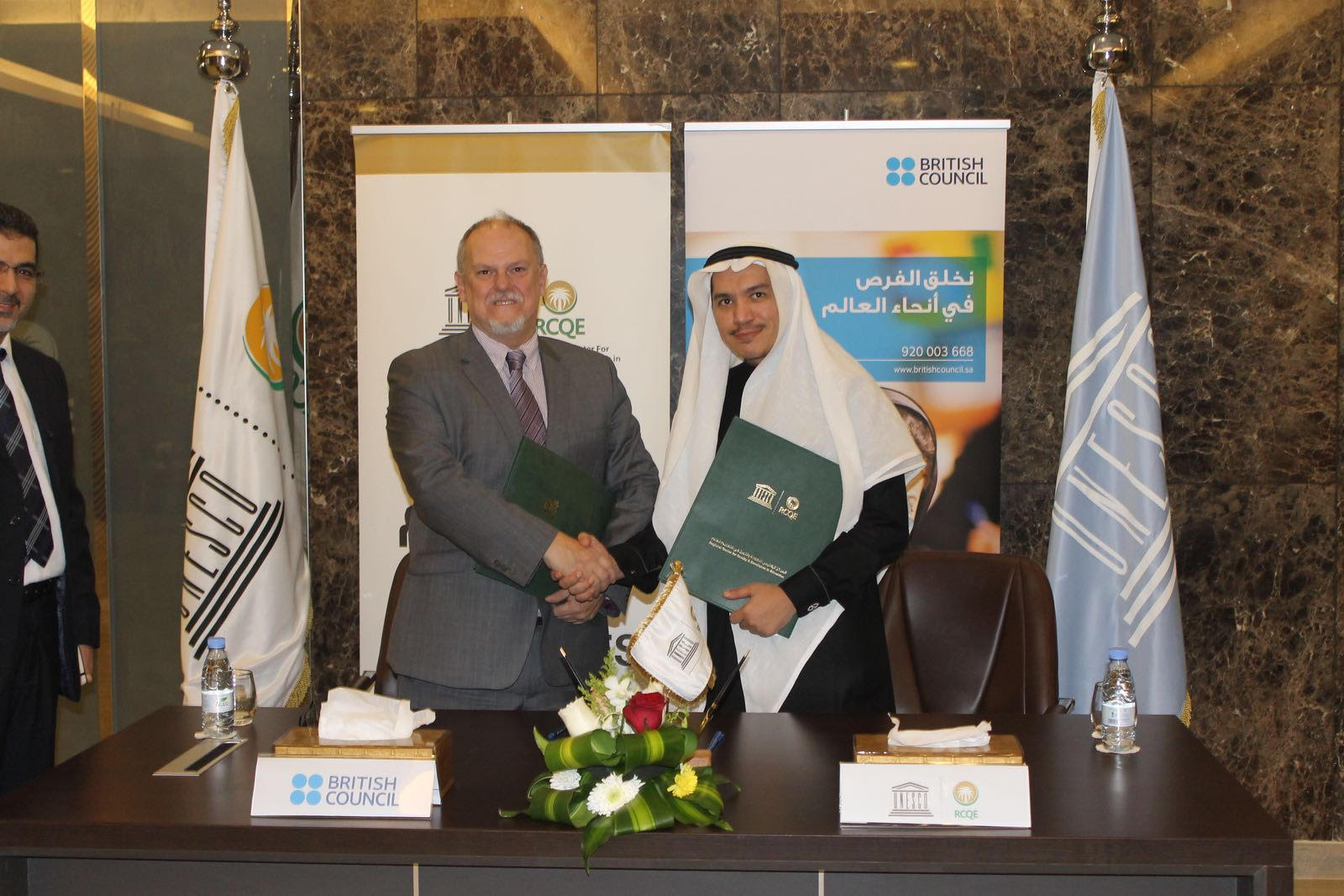 وقع مركز اليونسكو الإقليمي للجودة والتميز في التعليم مذكرة تفاهم مع المجلس الثقافي البريطاني في مقر مركز اليونسكو بحي السفارات بالرياض. حيث وقع المذكرة الدكتور حسام بن عبدالوهاب زمان المدير العام لمركز اليونسكو والسيد شارلي وولك مدير الملجس الثقافي البريطاني.