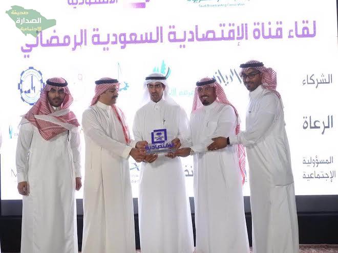 وأردف الجفن: أننا ننظر إلى رؤية 2030 بتفاؤل كبير خصوصا وأنها تركز على الشباب وتهتم بالرياضة والتي تتقاطع مع كل مناحي الحياة وأولها الاقتصاد والصحة، لذلك نرى أن مدينة الجفن الرياضية تعد إحدى مبادرات التطوير الرائدة لمجموعة المدرج القابضة والتي تتوافق مع الرؤية الوطنية 2030 للمساهمة في تحويل الرياضة إلى صناعة نجوم وابطال بأساليب تربوية وتدريبية متنوعة وبعد ذلك شاهد الجميع فيلم قصير عن جمعية إخاء الخيرية، ثم قدم المشرف العام على قناة الاقتصادية الإعلامي سعود الغربي بمشاركة المشرف العام على القناة الثقافية الأستاذ عبدالعزيز العيد الدروع التكريمية لشركاء نجاح هذا اللقاء الرمضاني الأل، حيث تم تكريم اكاديمية الجفن الرياضية استلمها الاستاذ اسامة الجفن نائب رئيس مجلس الإدارة، وشركة أبناء محمد السعد العجلان استلمها الاستاذ محمد عبدالعزيز العجلان، وملاعب نادي الرياض للجولف تسلمها المهندس يوسف الدويش المدير العام، ومجموعة الجازع التجارية تسلمها الاستاذ فهد الحمادي رئيس اتحاد المقاولين، والمركز العالمي لإعداد القادة تسلمها المحامي نهار الدلبحي، والغرفة التجارية بالرياض تسلمها الدكتور سعود السهلي نائب أمين عام الغرفة، ومجموعة إعمار الخليج الدولية تسلمها الدكتور محمد الهدلاء.