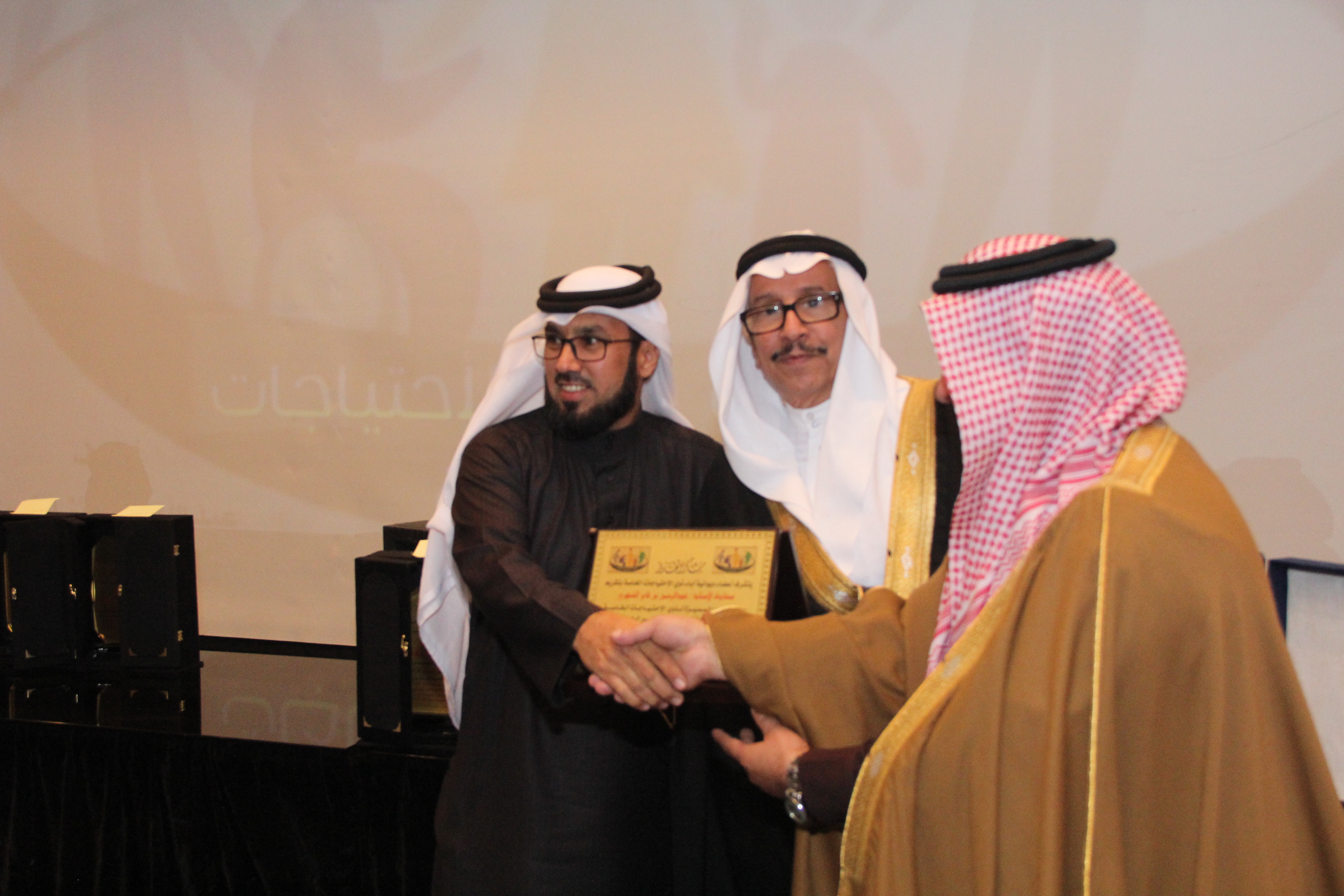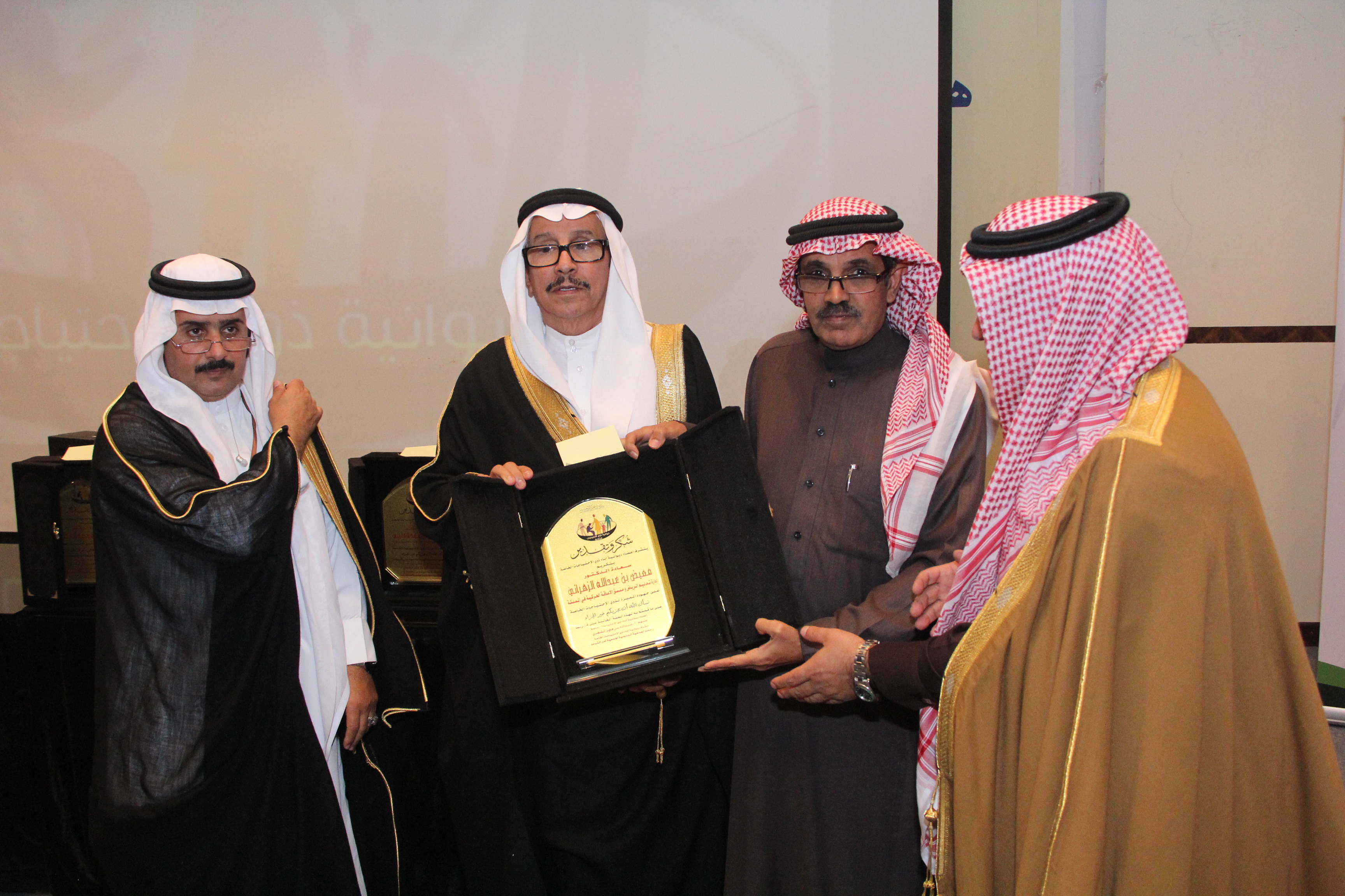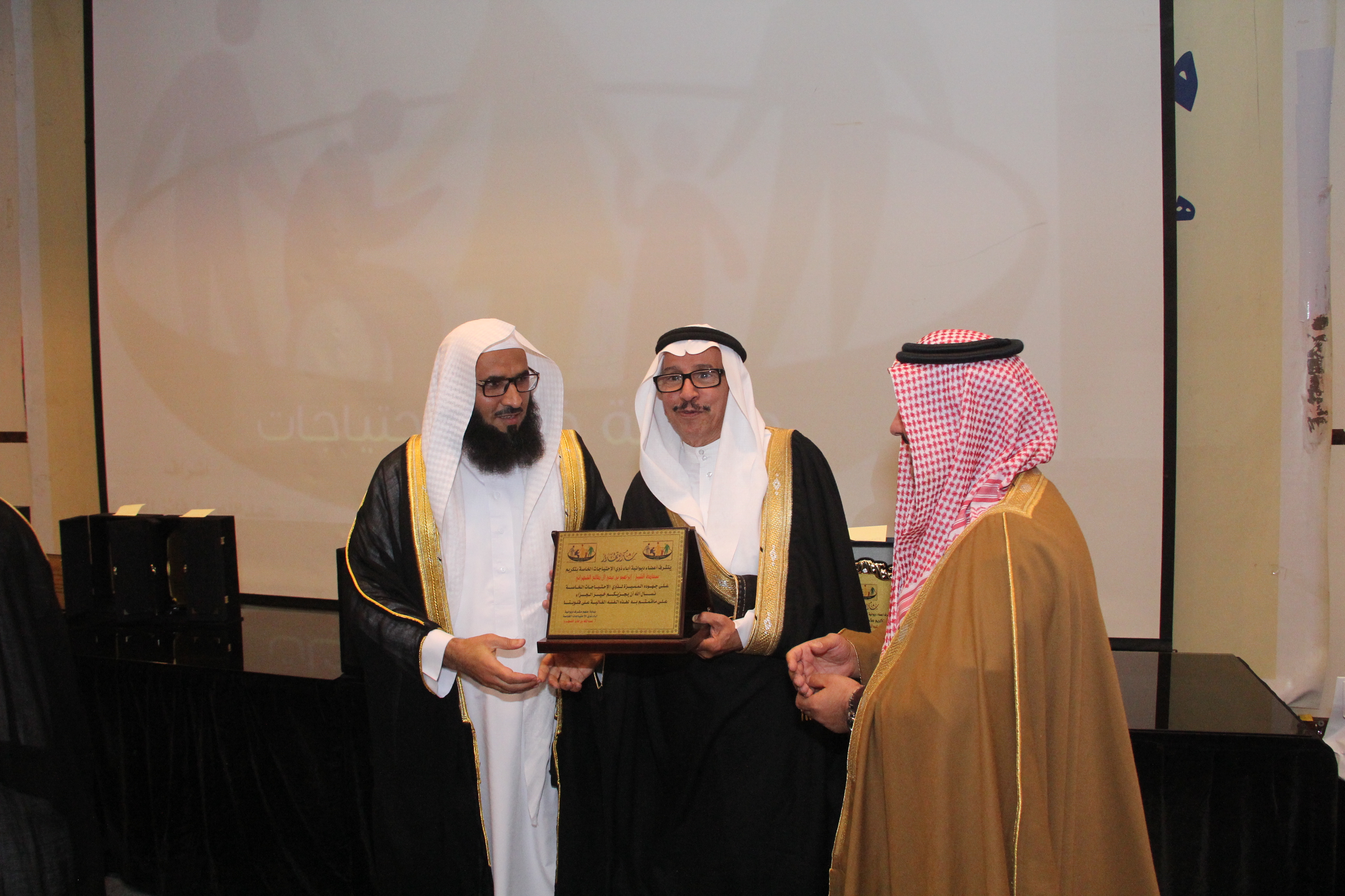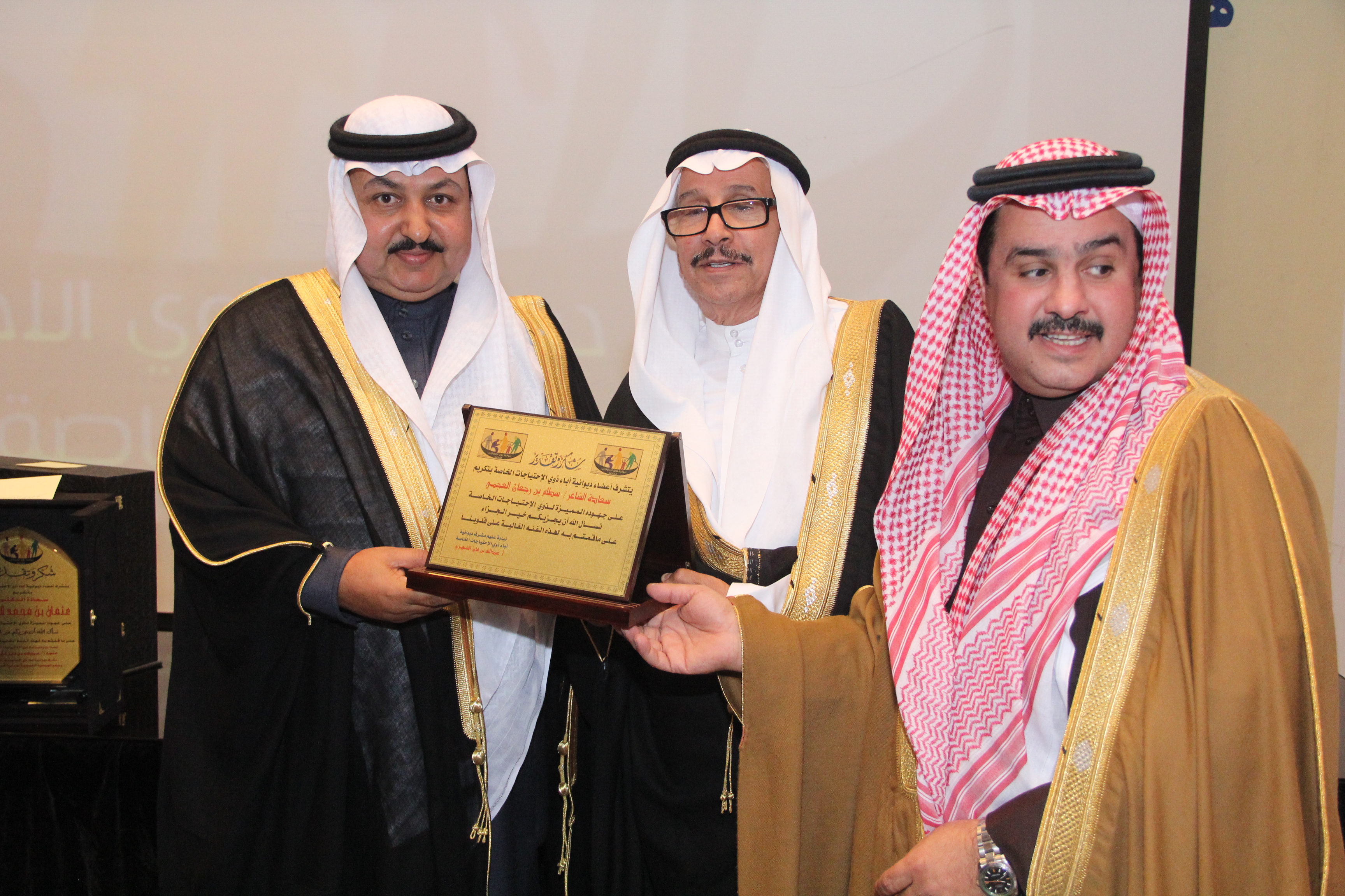 أقام أولياء أمور ذوي الاحتياجات الخاصة حفلاً تكريمياً للاستاذ سعد بن عبدالعزيز العويس نظير جهوده المميزة وسعيه الدؤب لخدمة تلك الفئة الغالية وذلك في مركز البابطبن الثقافي بحضور العديد من المسؤولين والاكاديميين والمهتمين والداعمين وأولياء الأمور ، وقد أعد برنامجاً خطابياً بهذه المناسبة تنوعت فقراته حيث القى سعادة الاستاذ الدكتور عبدالمحسن بن سعد العتيبي نائب جمعية أسر التوحد كلمة بهذه المناسبة ، كما القى مشرف ديوانية آباء ذوي الاحتياجات الخاصة الاستاذ عبدالله بن فايز الشهري كلمته بهذه المناسبة ، ثم تحدث المحتفى به للحضور مجدداً العزم على مواصلة مسيرة عمله الدؤب لخدمة تلك الفئة، وفي مدخلة هاتفية أكدت سمو الأميرة سميرة الفرحان رئيسة جمعية أسر التوحد بالمملكة دعمها التام لكل مايخدم ذوي الاحتياجات الخاصة معبرة عن شكرها وتقدير لجهود المحتفى به وجميع أعضاء ديوانية آباء ذوي الاحتياجات الخاصة ،ثم توالت المشاركات والمداخلات المميزة والتي أثرت الحفل ، بعدها تم تقديم الهديا للمحتفى به وللجهات الداعمة والراعية .