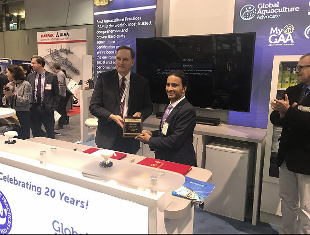 كرم الاتحاد العالمي للاستزراع المائي، الجمعية السعودية للاستزراع المائي هامش معرض المأكولات البحرية في أمريكا الشمالية (SENA) لعام 2017 في مدينة بوسطن بالولايات المتحدة الأمريكية، وذلك نظير جهود الجمعية المبذولة من أجل تحقيق أفضل الممارسات للاستزراع المائي بالمملكة، وجهودها الكبير في تنمية قطاع الاستزراع المائي في المملكة والعمل الجاد على دعم حصول المشاريع والمزارع السمكية على شهادة أفضل ممارسات الاستزراع المائي.