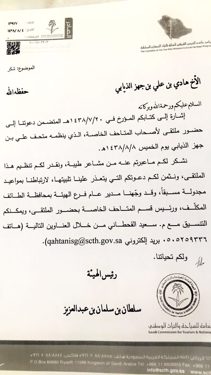 ٣- ذياب بن شراع الذيابيوقد ثمنت الهيئة العامة للسياحة والآثار هذه البادرة وقدمت الشكر لاصحاب تلك المبادرة الوطنية الأصيلة .