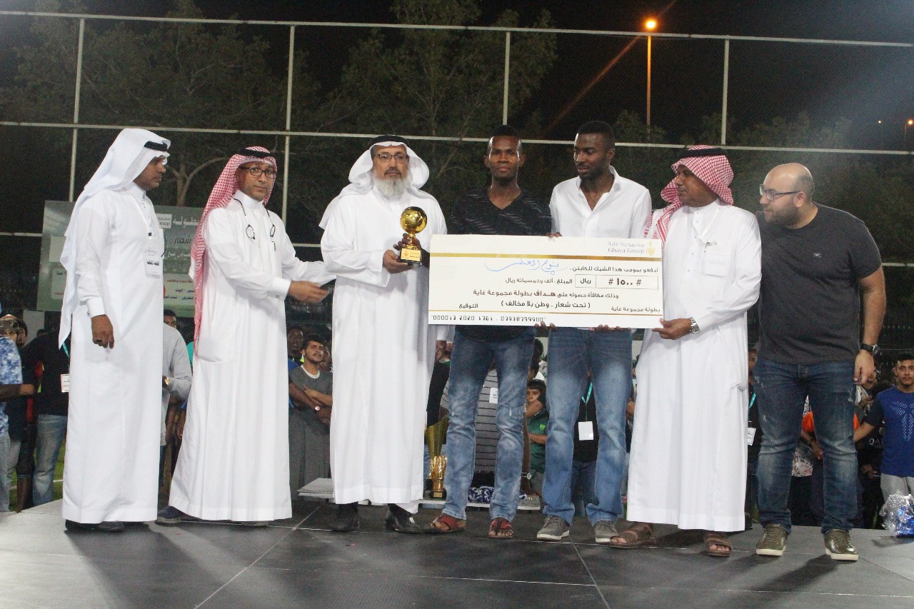 وحضر حفل الختام والتتويج عدد من الشخصيات الرياضية والإعلامية ومن منسوبي جوازات العاصمة المقدسة وشرطة العاصمة المقدسة، وكذلك نجمي الكرة السعودي “عيسى المحياني وخالد الحازمي” والمعلق الرياضي الشهير في قنوات mbc برو سبورت المصري بلال علام وجماهير كبيرة، حيث تم بعد نهاية المباراة تكريم المشاركين في نجاح البطولة، ومن ثم اللاعبين المميزين فيها بجوائز عينية ومبلغ 1500 ريال لكل منهم، حيث حصل نواف الصبحي من فريق الفيصلي على جائزة أفضل لاعب، ومصطفى بزة من أكاديمية نور على جائزة أحسن حارس، وتتويج اللاعب نوح المعلم من فريق الوفاء بجائزة هداف البطولة، وتسليم فريق أكاديمية نور الميداليات الفضية ومبلغ 10 آلاف ريال، وتتويج فريق الفيصلي بكأس بطولة مجموعة غاية الرياضية لكرة القدم والميداليات الذهبية ومبلغ 15 ألف ريال، وقامت اللجنة المنظمة بإجراء سحوبات على جوائز قيمة للجماهير الحاضرة على ملعب السلطان.