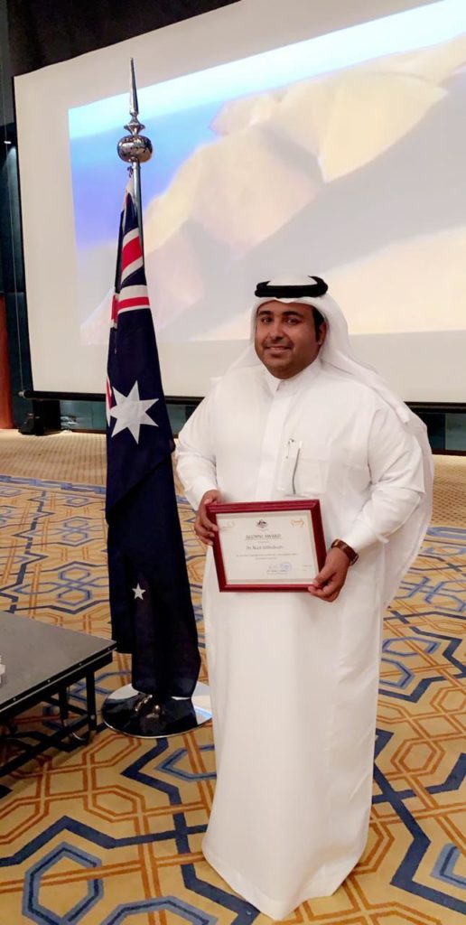 من جانبه، تلقى الدكتور نايف البراق الجائزة ببالغ التقدير والإعزاز، مثمنًا للسفارة الإسترالية هذا التكريم، كما رفع أسمى آيات الشكر لحكومة خادم الحرمين الملك سلمان بن عبد العزيز – حفظه الله – التي أتاحت للمواطن السعودي بما قدمته من دعم مخلص ورعاية صادقة أن يطوف في أعرق جامعات المعمورة مبتعثًا؛ ليعود إلى وطنه حاملاً مشاعل العلم، ورايات التطوير الأكاديمي، على النحو الذي يسهم في حث الأجيال الجديدة من الطلاب، وتوجيههم لبذل المزيد من الجهود من أجل تحقيق رؤية المملكة 2030.