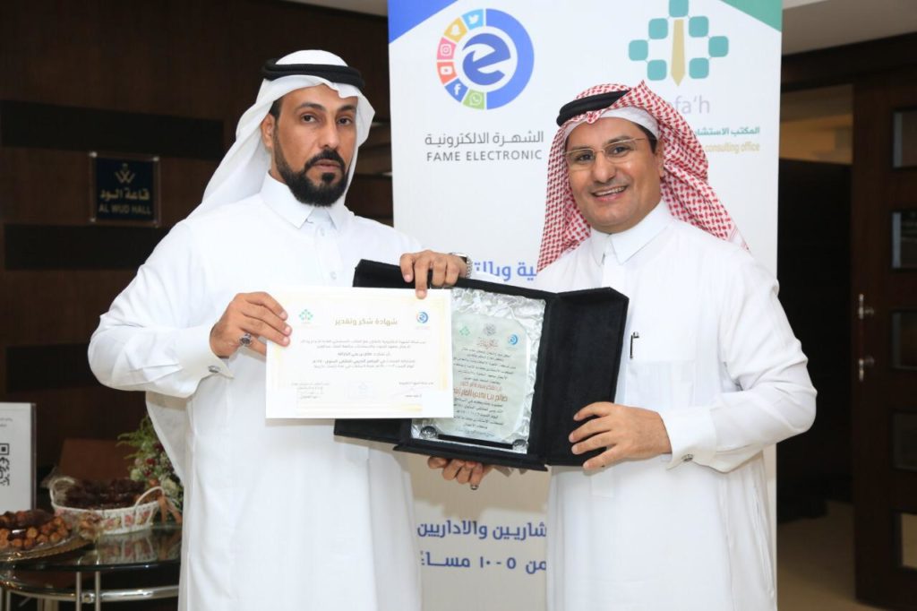 نظم المكتب الاستشاري كفاءة للإبداع وذكاء الأعمال بمعهد البحوث والاستشارات بجامعه الملك عبدالعزيز الاجتماع واللقاء التدريبي السنوي الأول لعام ١٤٤٠ بالتعاون وبدعم وتنظيم كامل من راعي الحفل شركه الشهرة الالكترونيه الشريك الاستراتيجي للمكتب بصفة دائمة