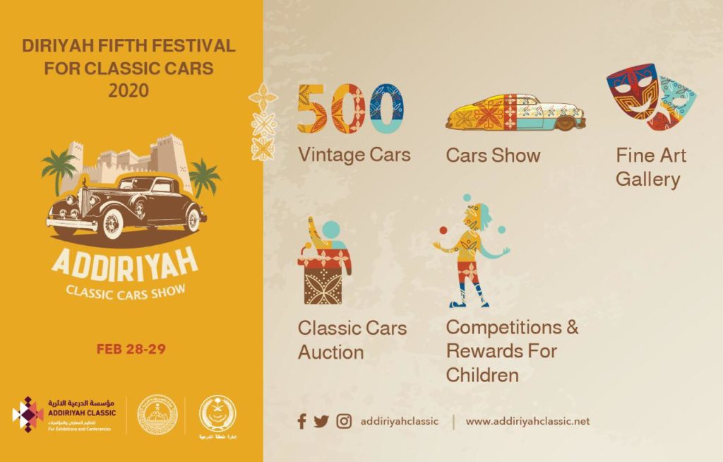يترقب عشاق السيارات الكلاسيكية مهرجان الدرعية السنوي في نسخته الخامسة خلال الفترة من 27 إلى 29 فبراير الحالي، والذي يحظى باهتمام وإشراف محافظ الدرعية سمو الأمير أحمد بن عبد الله بن عبد الرحمن آل سعود، وبرعاية هيئة تطوير بوابة الدرعية وتنظمه مؤسسة الدرعية الأثرية.