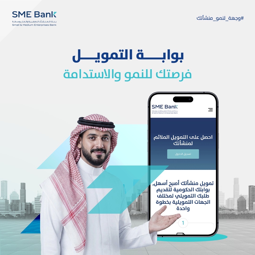 يواصل بنك المنشآت الصغيرة والمتوسطة دوره في تمكين قطاع المنشآت الصغيرة والمتوسطة، عبر بوابة التمويل التي أُطلقت لتكون منصةً رقمية تجمع المنشآت بالجهات التمويلية، بما يمكّن المنشآت من الوصول إلى الحلول التمويلية المناسبة وتعزيز فرص النمو والتوسع.